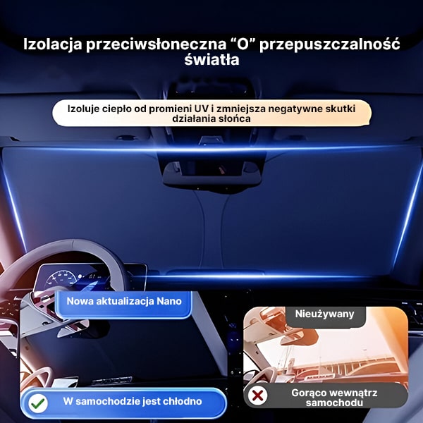 🚗 Ta łatwa w montażu, składana osłona przeciwsłoneczna chroni deskę rozdzielczą, siedzenia i kierownicę.