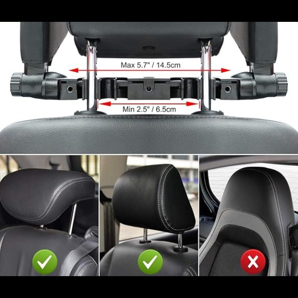 Kompatybilność: Odpowiedni do foteli samochodowych z oddzielnymi zagłówkami i rozstawem oparcia 7-16 cm. Nie nadaje się do stałych zagłówków.
