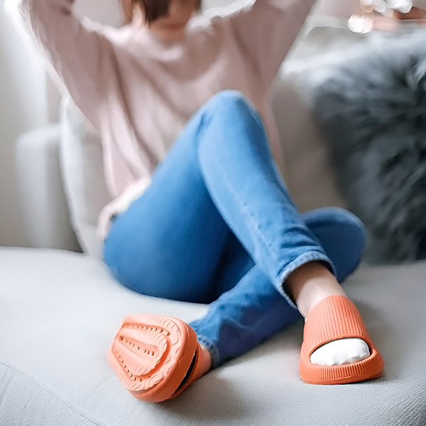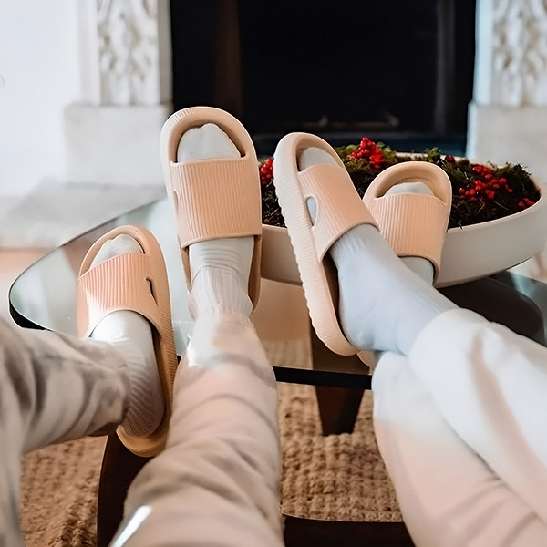 Ciesz się spokojem i komfortem w domu dzięki klapkom FLIPSY. Lekkie, ciche i antypoślizgowe, idealnie nadają się na relaksujące poranki i stawianie stabilnych, miekkich kroków na podłogach z twardego drewna, płytek lub wykładziny.