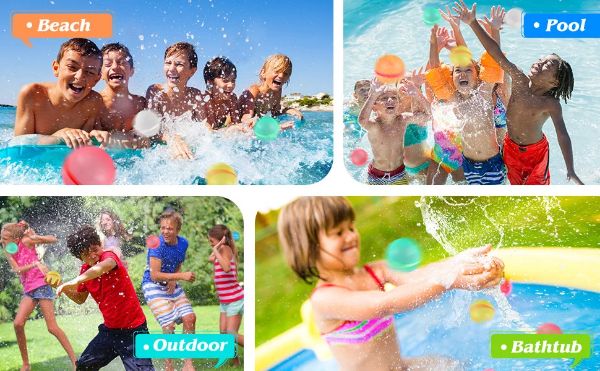 Niezależnie od wieku, nasze balony na wodę wielokrotnego użytku stanowią ekscytującą i przyjemną metodę na pokonanie upału podczas gorących letnich dni. Oferują nieskończone możliwości angażowania się w szeroką gamę gier i aktywności, takich jak rzuty balonem wodnym, wyścigi sztafetowe i walki wodne w basenie.