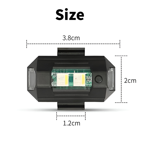 📏 Kompaktowe i lekkie – 3,8 x 2 cm, obudowa z ABS, w zestawie 2 lampki z rzepami, gumowymi pierścieniami i kablem ładującym USB.
