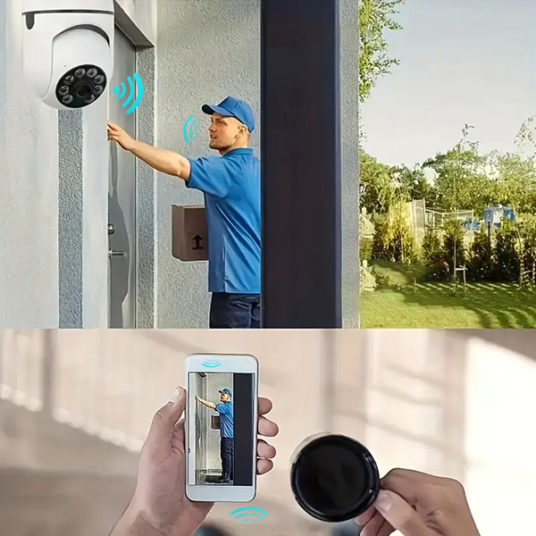 Dzięki głośnikowi interkomu BULBCAM możesz rozmawiać bezpośrednio przez telefon komórkowy z każdą osobą znajdującą się przed drzwiami. Możesz również wydawać instrukcje dostawcom, a nawet oprowadzać gości, jeśli jesteś zajęty lub nieobecny, co ułatwia zarządzanie gośćmi z dowolnego miejsca.